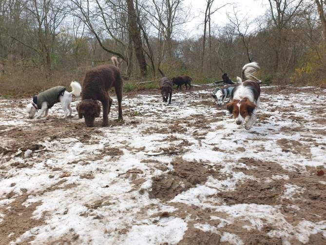 De honden rennen los, spelen, rollen door de modder en komen voldaan (en vaak heerlijk vies) weer thuis.