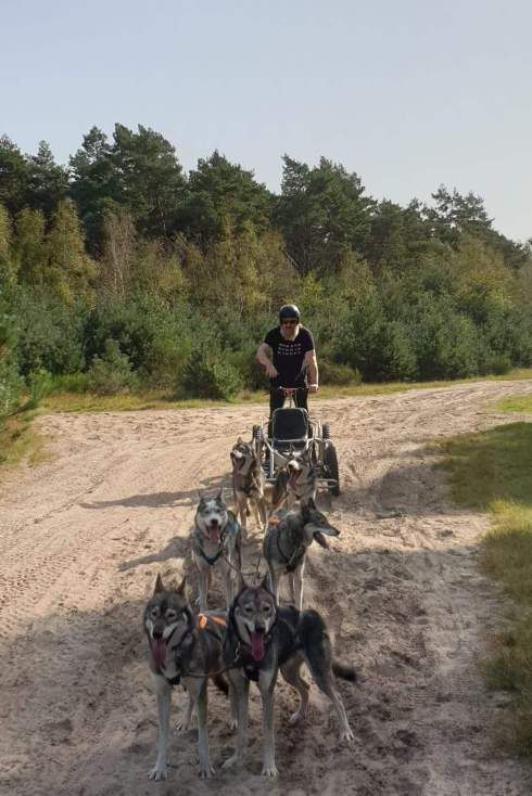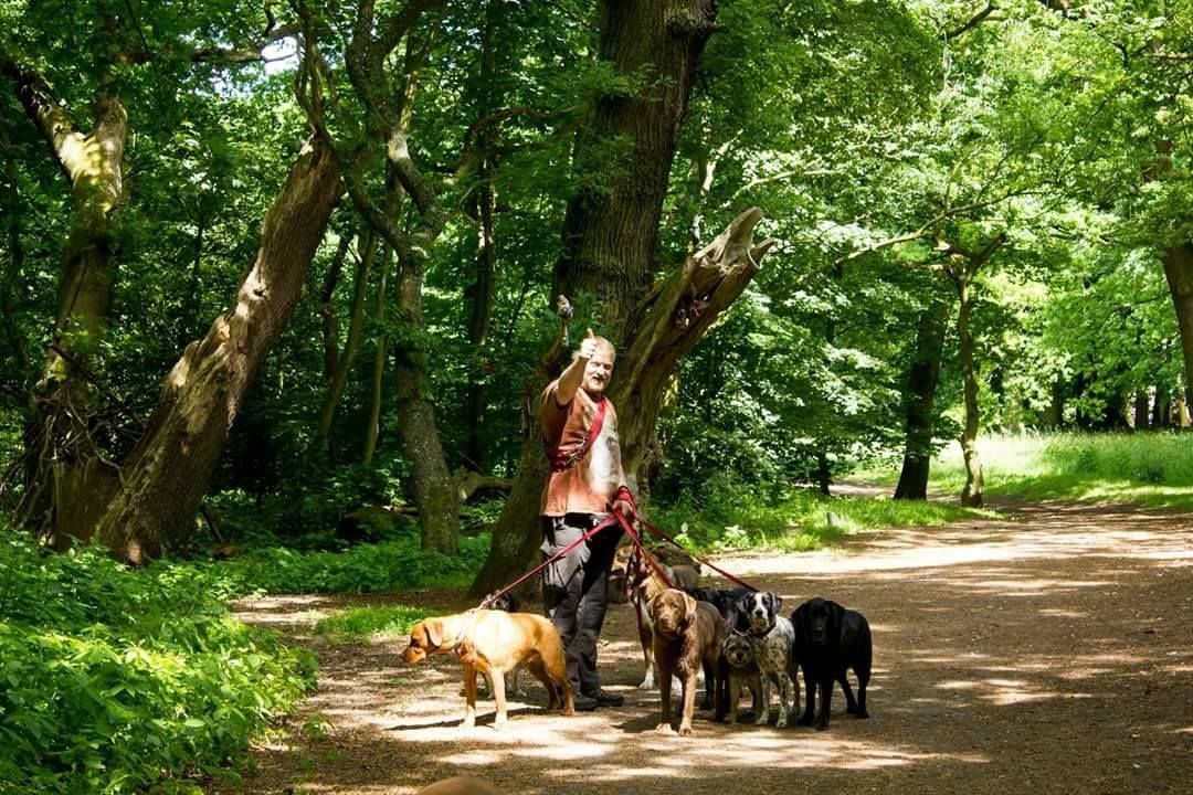 Fluitend en zingend wandelt hij dagelijks met zijn vrolijke roedel van 10 tot 12 honden – van chihuahua tot Duitse dog. Geen standaard uitlaatservice, maar een hechte roedel waar harmonie en vrijheid centraal staan.